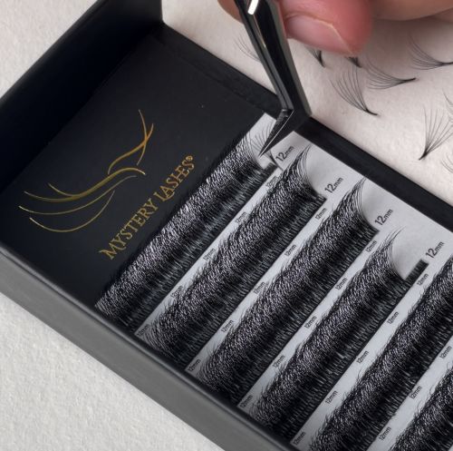 Dank einer innovativen Fertigungstechnologie passen jetzt 75 bis 90 perfekt vorgefertigte Wimpernfächer auf nur einen Streifen – anstelle der üblichen 8 bis 16.